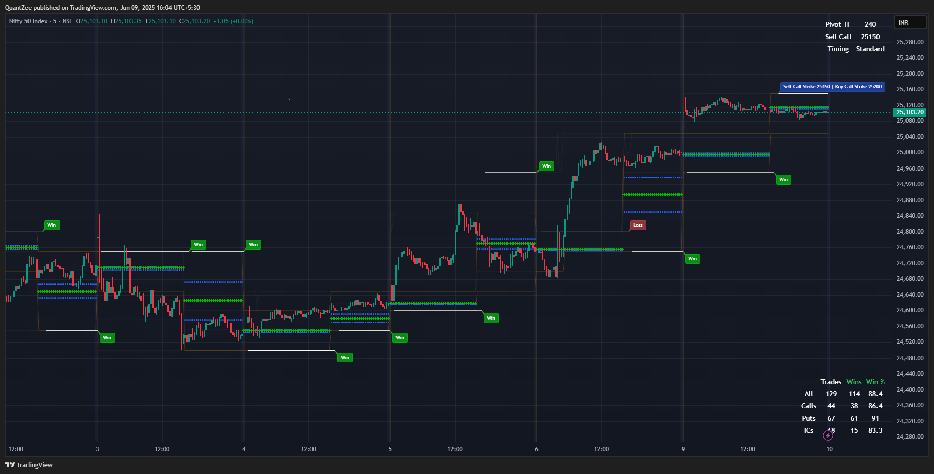 - Multi-Strategy Signals: Flags sell-call (below CPR), sell-put (above CPR), or iron condor (inside CPR) trades