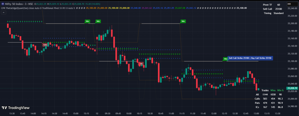 This indicator revolutionizes options selling with its powerful CPR-based strategy. It identifies high-probability setups for Call, Put, or Iron Condor trades, leveraging pivot levels for precise strike selection. Key features include automated strike prices, customizable timeframes, backtesting, and win/loss analytics.